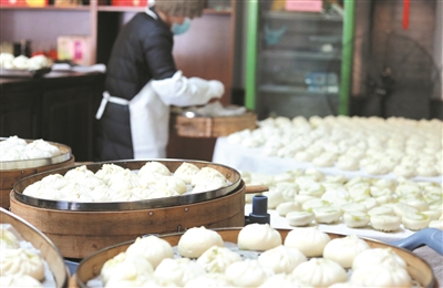 距离农历马年春节还有不到一个月时间,镇江餐饮市场已提前进入“忙年”节奏,“年蒸”与年夜饭同步迎来预订高峰。市区多家菜馆的手工包子、蒸饺、熟食等速冻年蒸点心订单量激增,预计10天后将迎来集中提货潮。 文雯 摄