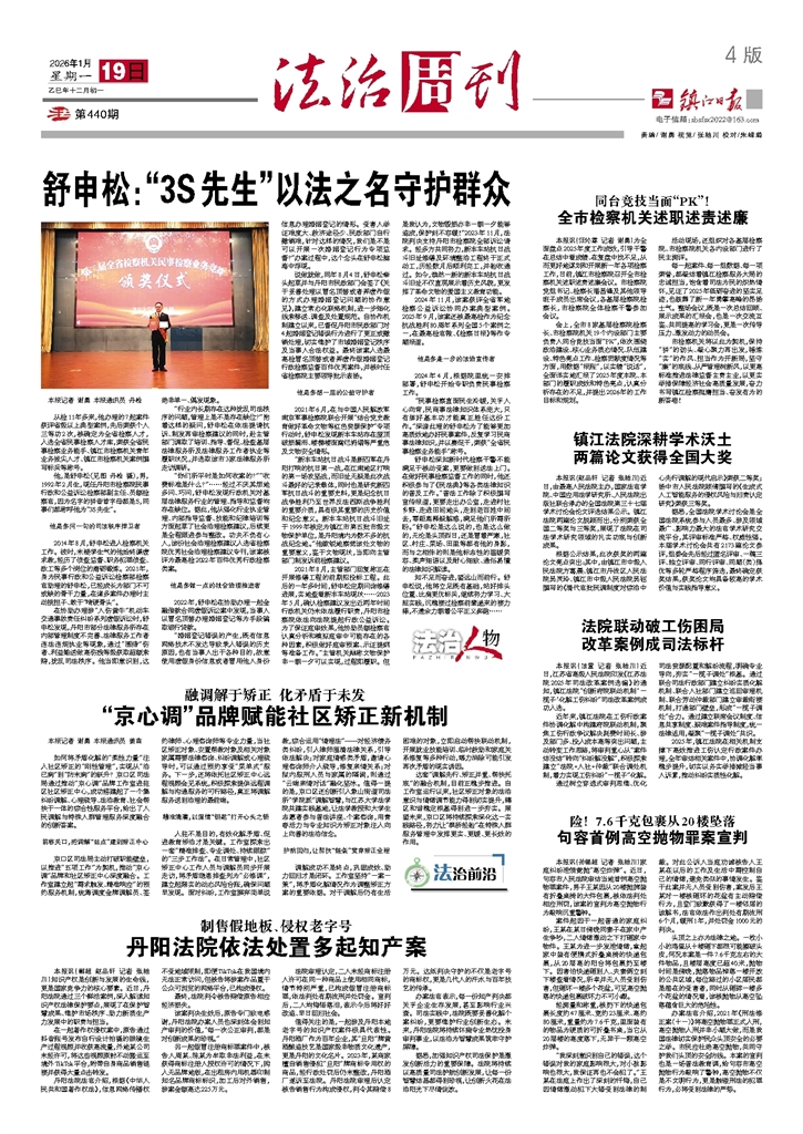 - 镇江法院深耕学术沃土 两篇论文获得全国大奖 本报讯(赵品轩 记者 张驰川)近日,由最高人民法院主办,国家法官学院、中国应用法学研究所、人民法院出版社联合承办的全国法院第三十七届学术讨论会论文评选结果公示。镇江法院两篇论文脱